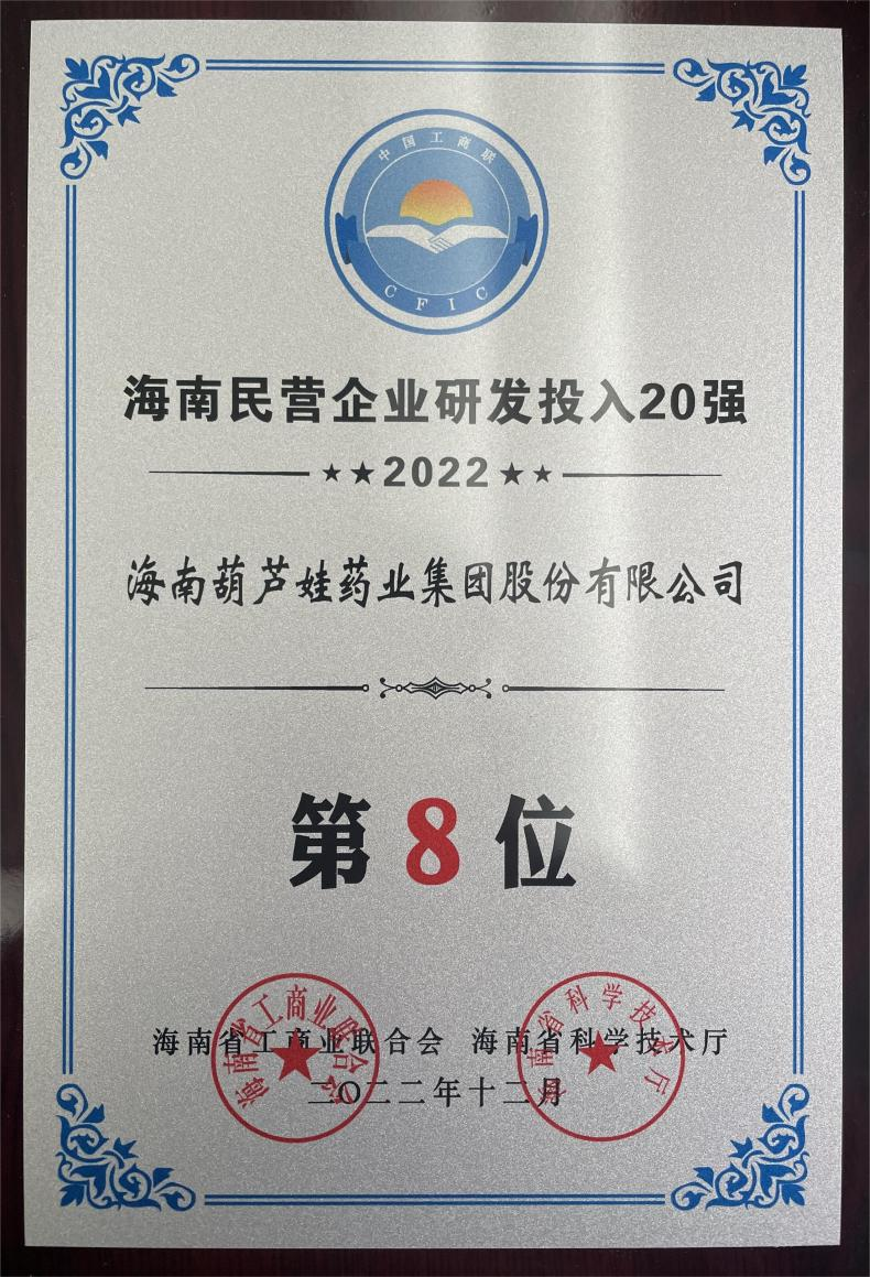 12月23日,2022海南民营企业50强和研发投入20强发布会在海口举行。会上发布了“2022海南民营企业50强”“2022海南民营企业研发投入20强”榜单和分析报告。ks凯时药业再次荣登两榜,在海南民营企业50强榜单中位列第25位,较去年上升8位,这也是公司连续三年登榜;在海南民营企业研发投入20强中位列第8位,较去年上升7位。